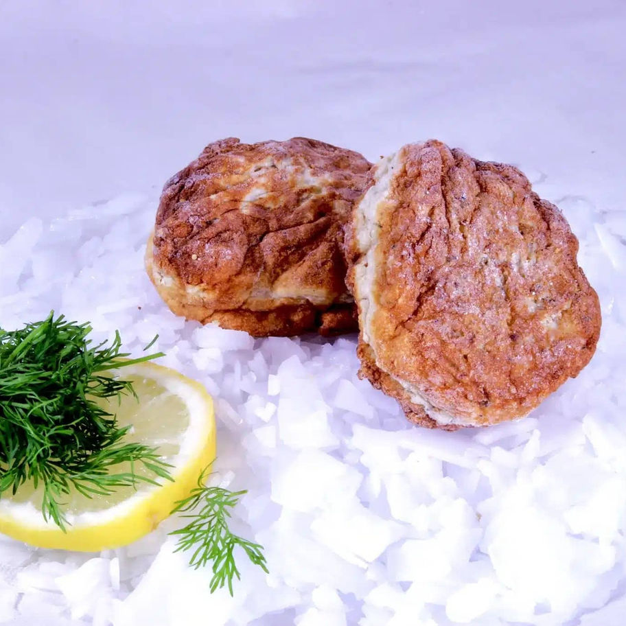 Fiskekaker av Steinbit fra Dalen fiskemat på Godøya. hånd stekte 125g’s kaker med helt unik smak. 40% fiske innhold